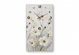 Выполненные на натуральном холсте, картины с часами вызывают ощущение настоящего уюта. Фактура натурального льна делает штрихи красок рельефными, мягко преломляющими свет.
