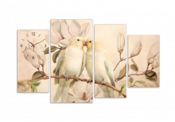 Выполненные на натуральном холсте, картины с часами вызывают ощущение настоящего уюта. Фактура натурального льна делает штрихи красок рельефными, мягко преломляющими свет.