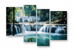 Выполненные на натуральном холсте, картины с часами вызывают ощущение настоящего уюта. Фактура натурального льна делает штрихи красок рельефными, мягко преломляющими свет.