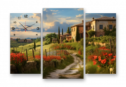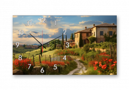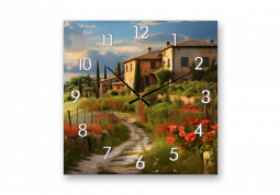 Выполненные на натуральном холсте, картины с часами вызывают ощущение настоящего уюта. Фактура натурального льна делает штрихи красок рельефными, мягко преломляющими свет.