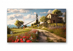 Выполненные на натуральном холсте, картины с часами вызывают ощущение настоящего уюта. Фактура натурального льна делает штрихи красок рельефными, мягко преломляющими свет.